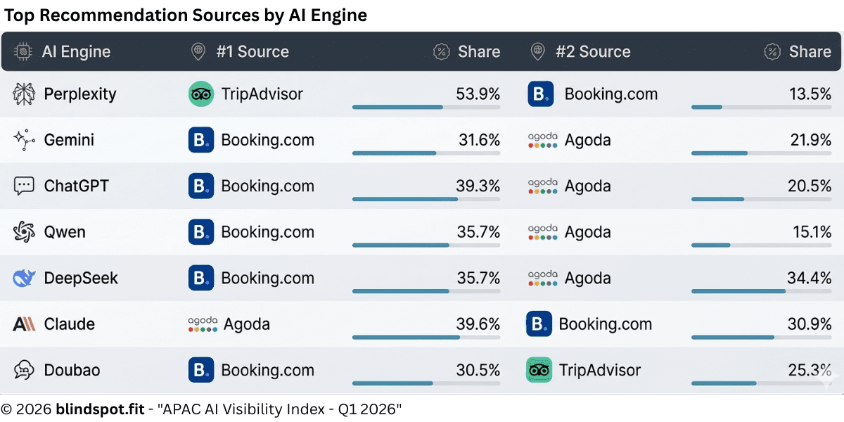 The Playbook is BlindSpot’s public research archive — free to read, no signup, no gate. Every article draws on our proprietary APAC AI Visibility study: 4,196 hotels across 20 cities, tested on 8 AI engines in 8 languages.